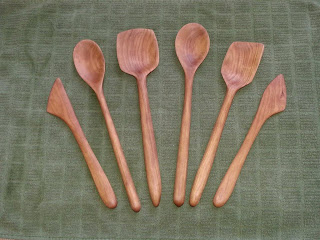I have a friend from worker who does ceramics on the side. She does nice work, so I asked her to make me a set of 10 drinking cups. She asked for cherry spoons. Here are the spoons. I will post pictures of the great cups she made when my camera cooperates.